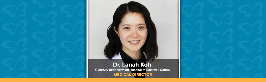 Dr. Lanah Koh has been named Medical Director of ClearSky Rehabilitation Hospital of Rockwall County. The new 36-bed medical rehabilitation hospital recently opened in Heath, Texas, and treats individuals recovering from debilitating illnesses or injuries such as strokes, brain injuries, spinal cord injuries, hip fractures, Parkinson’s disease, multiple sclerosis, and other medically-complex conditions.